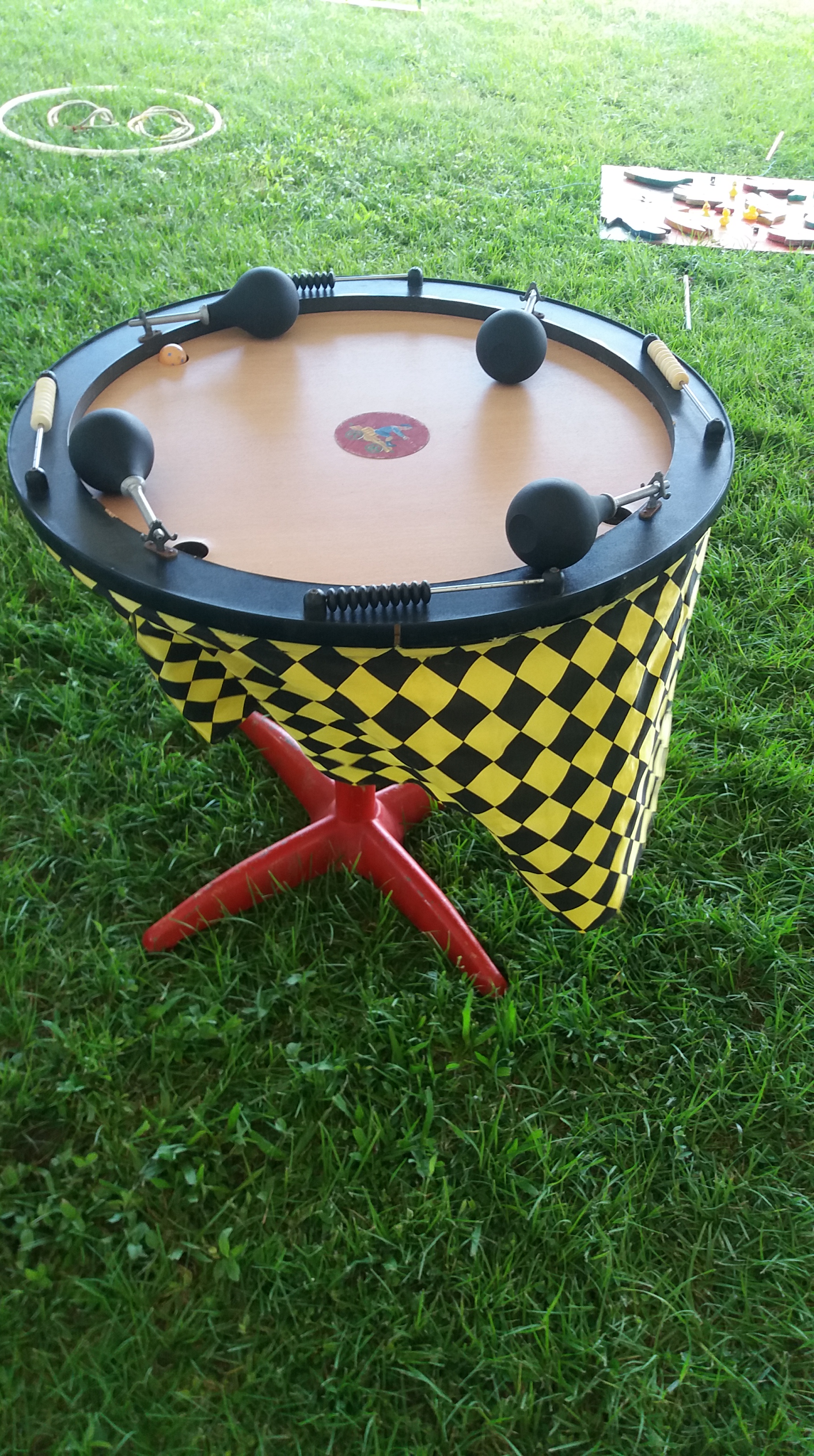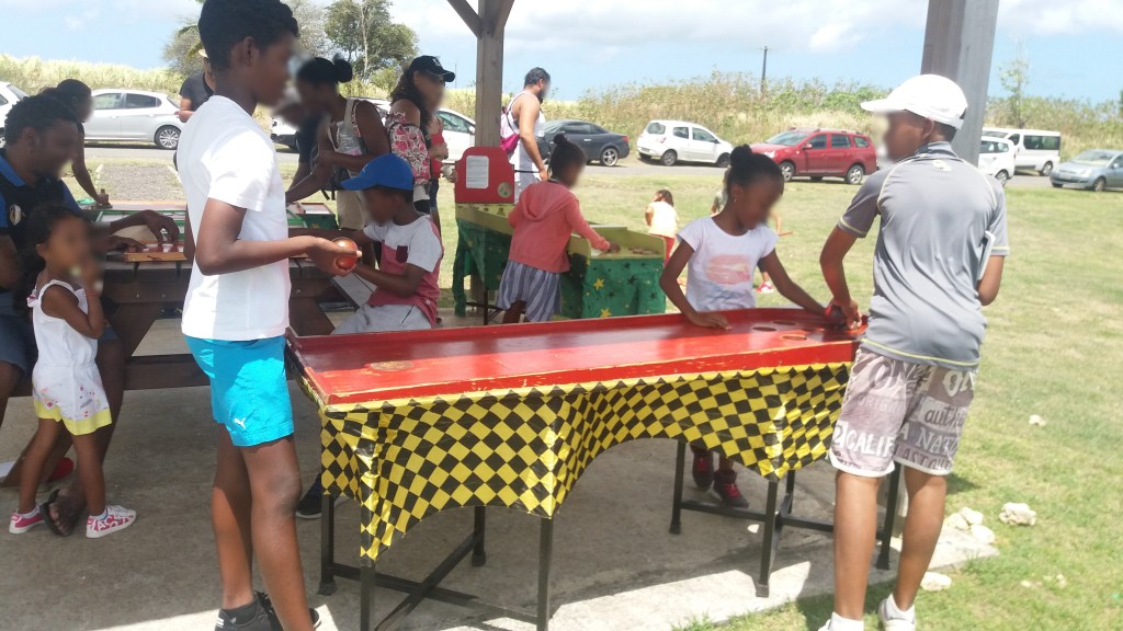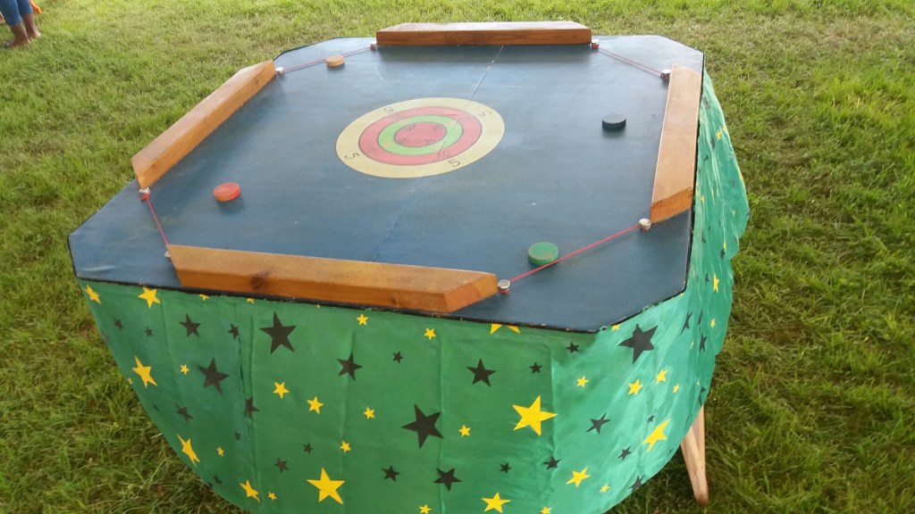 Jeu d’adresse où l’on doit faire rouler les palets sur la piste afin de les rentrer dans les fentes… pas évident du tout !